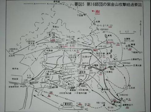 日军第16师团进攻紫金山的路线图