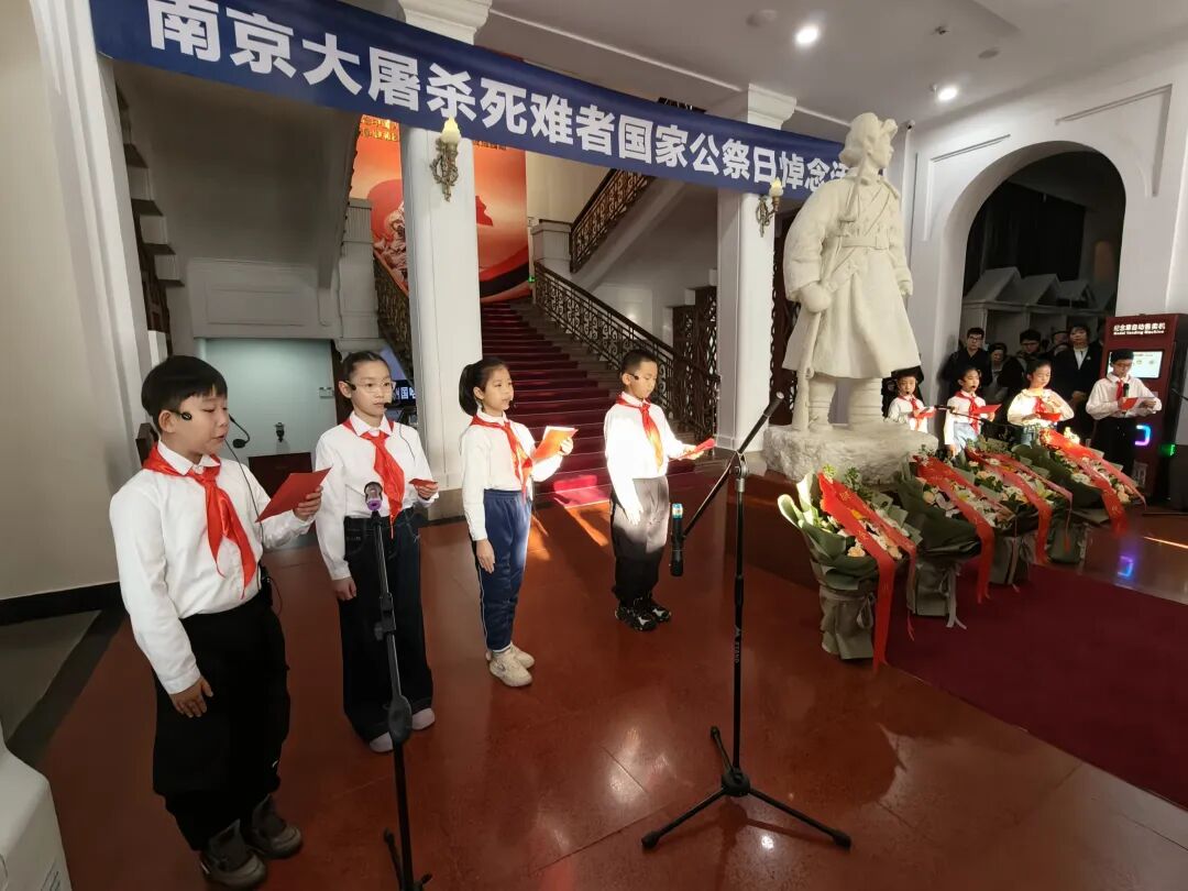 河南信阳。鄂豫皖革命纪念馆举行同步悼念活动。纪念馆全体职工共唱国歌,向死难同胞默哀。活动现场,讲解员代表朗诵纪念诗歌《民族的记忆》,以铿锵之声传递对历史的铭记、对和平的呼唤。12月12日,鄂豫皖革命纪念馆讲解员走进信阳市羊山外国语小学,以《人类的浩劫:1937南京大屠杀》图片展为内容,向师生们讲述了日军的残暴行径到中国军民的顽强抵抗,每一个细节都深深触动着师生们的心灵。