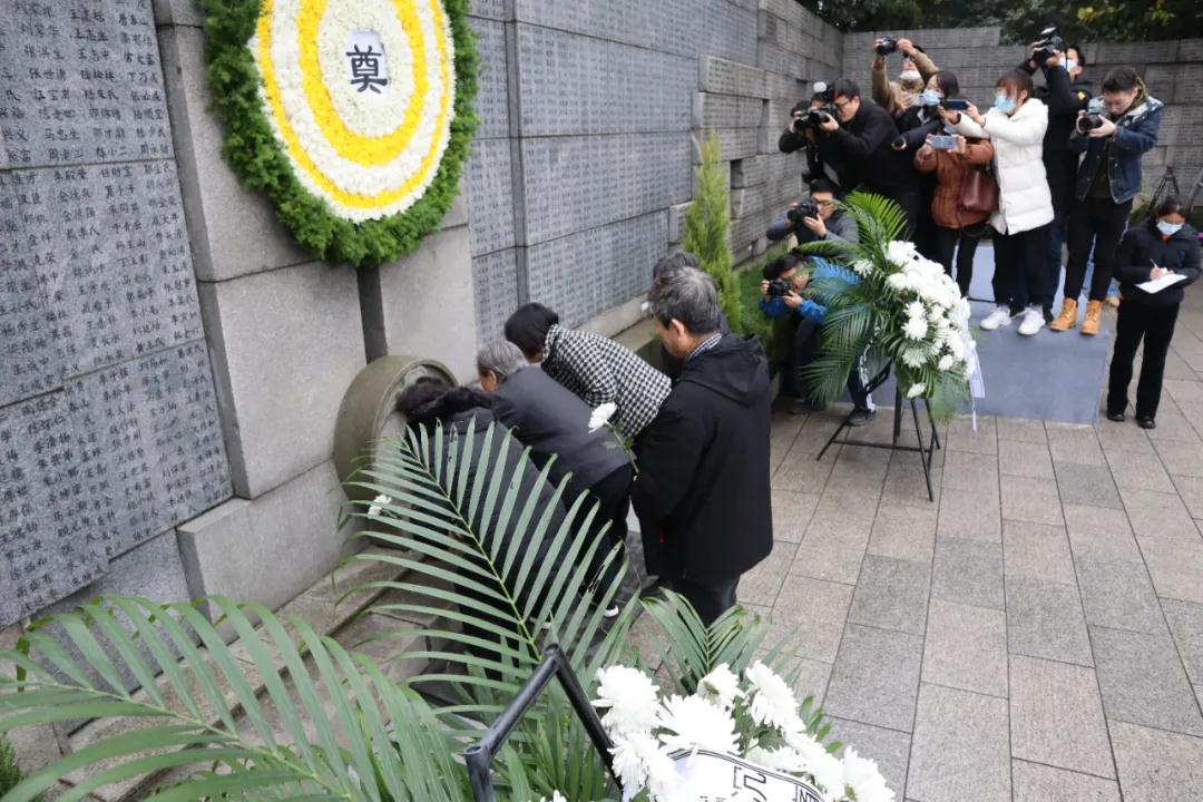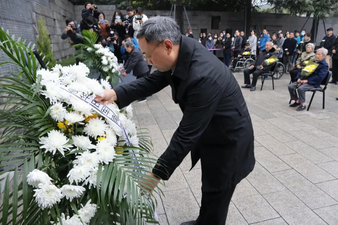 祭告活动尾声,南京大屠杀幸存者及遗属代表依次向遇难者名单墙敬献菊花。其他参加人员依次向遇难者名单墙敬献菊花。