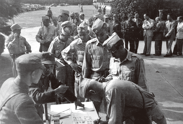 参加中国战区日军投降签字典礼的盟军军官陆续签到