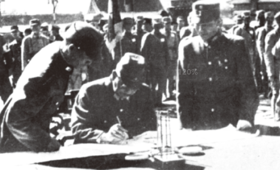 日本驻台湾总督兼日本第十方面军司令官安藤利吉在投降书上签字