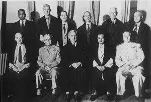 梅汝璈(前排右二)与其他10位法官在远东国际军事法庭合影