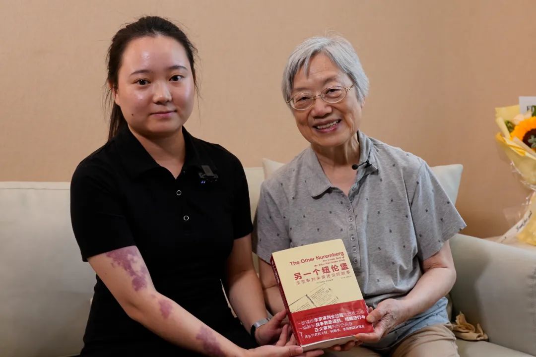 她毕业于北大,是新中国第一位国际法专业女博士,长期在跨国集团当法律顾问。然而,退休后她热情投入上海交通大学东京审判研究中心的工作,开始大量翻译校译日本侵华南京大屠杀研究史料和相关著述。她是东京审判中国法官梅汝璈之女梅小侃。7月11日,纪念馆工作人员前往北京拜访梅小侃先生,听她讲述与父亲往事,以及她做东京审判相关著作翻译工作的初心。说到动情处,她热泪盈眶。