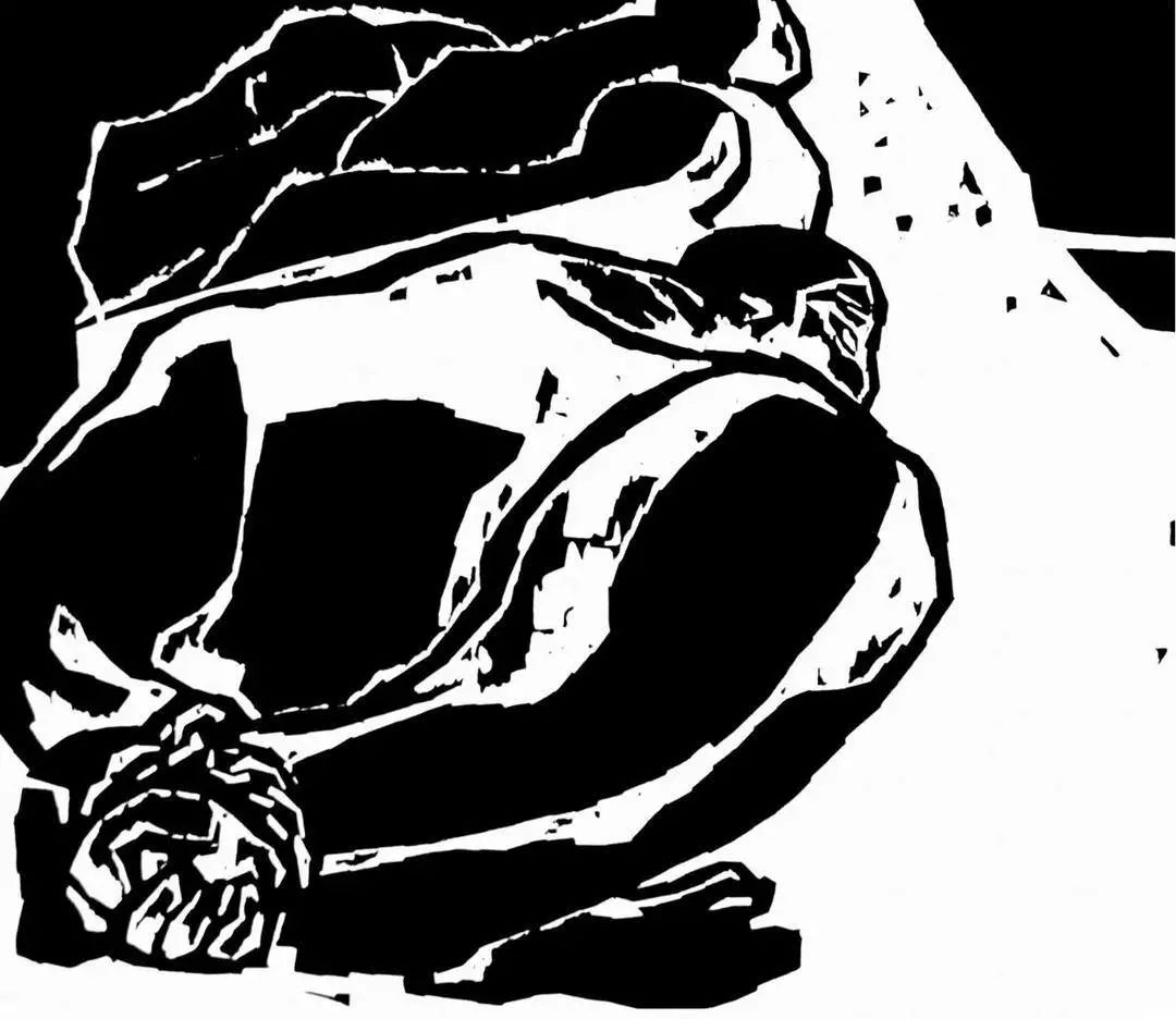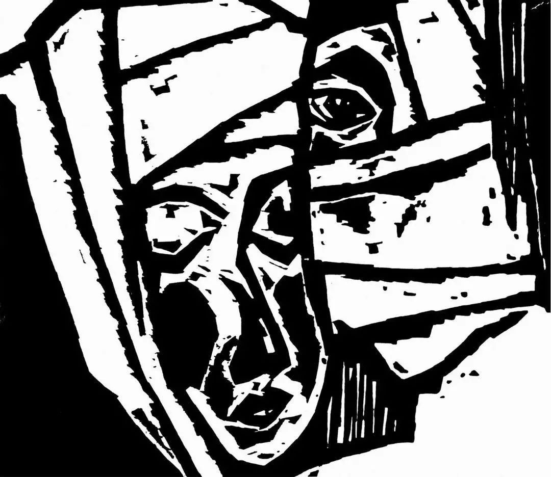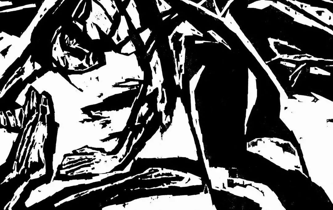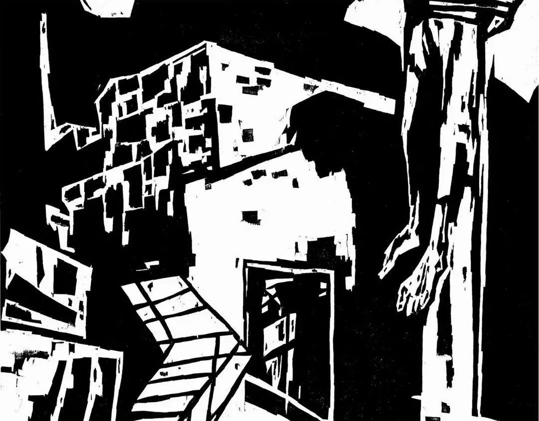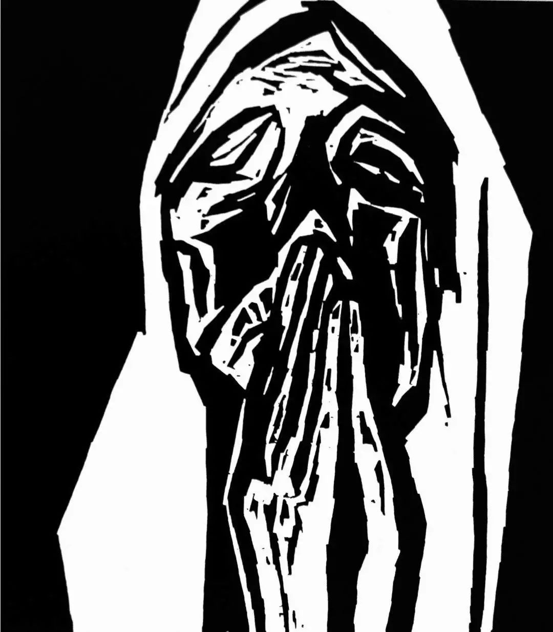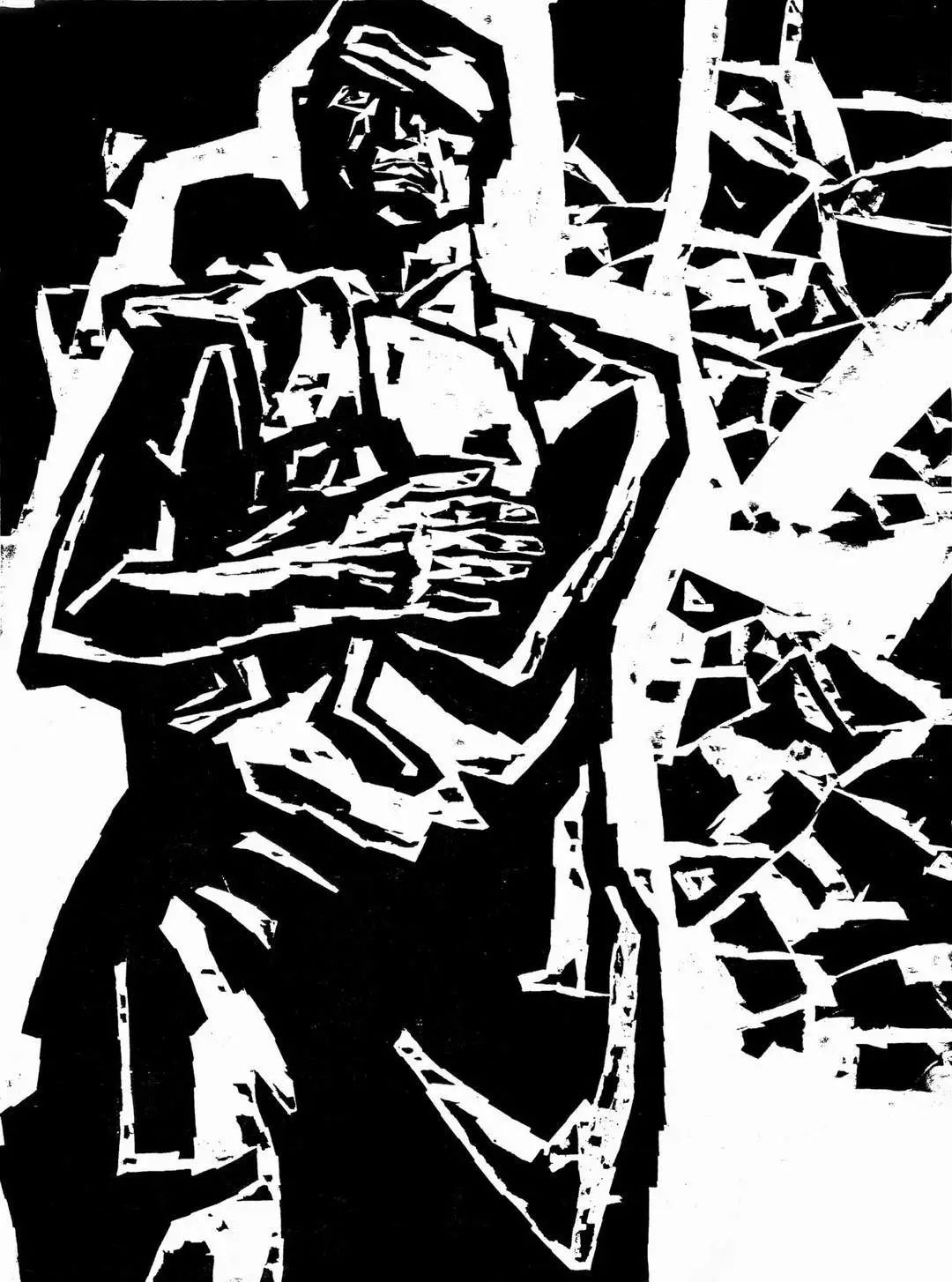 这幅大画在完成构思和绘制草图后,光是上板刻,就刻了一年之久。由于是黑白版画,必须当天印完,从早晨一直印到晚上才完工。它像宽银幕一样的巨大画面,拉开了悲剧的序幕,把人们引向血雨腥风的往昔。