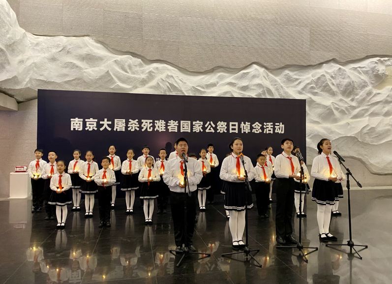 辽宁沈阳。沈阳“九·一八”历史博物馆同步举行悼念活动。来自沈阳市社会各界的200余名代表秉烛祈祷,参观《纪念南京大屠杀被害同胞遇难86周年图片展》,沉浸式观看情景剧《抗战小剧场》、电影《南京!南京!》等,表达铭记历史、缅怀先烈、珍爱和平、开创未来的意志。