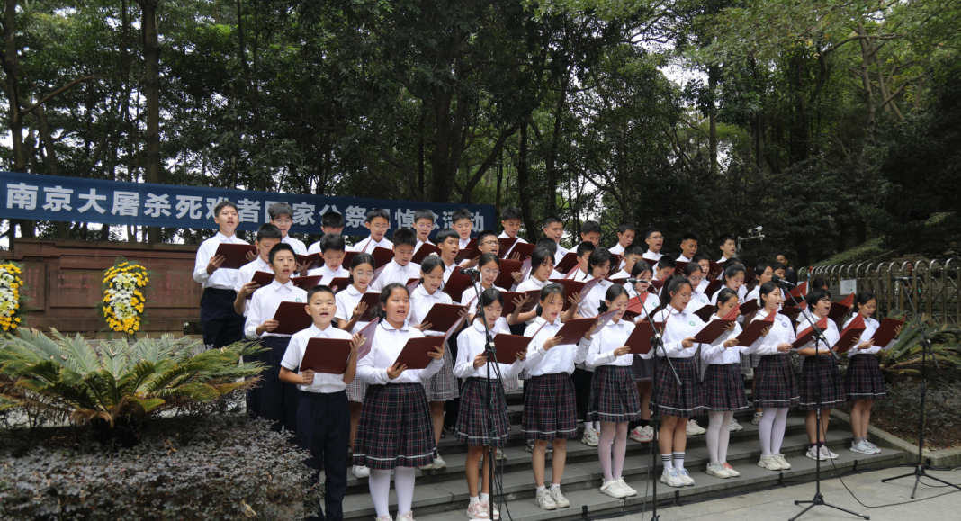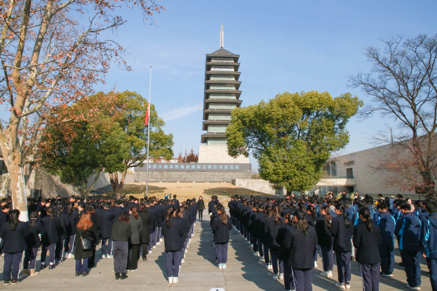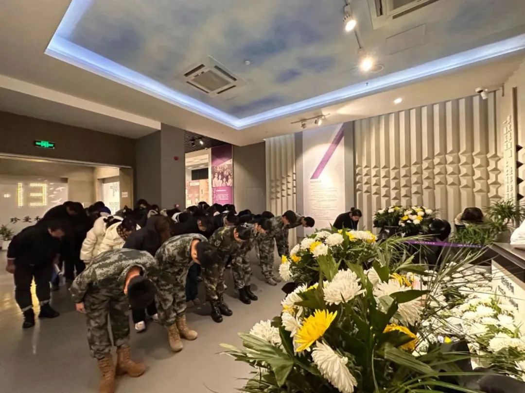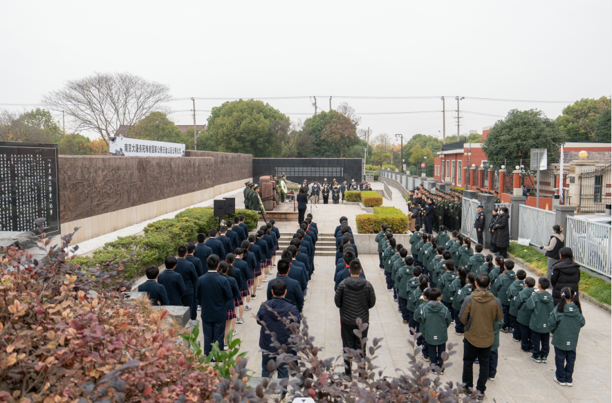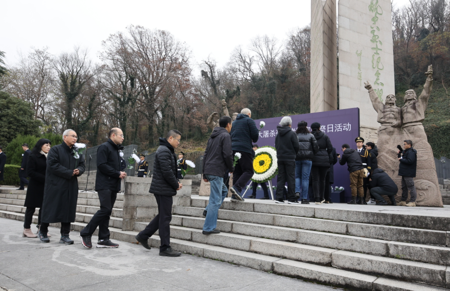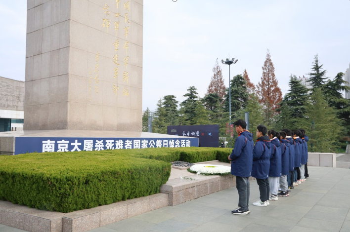 上海。上海淞沪抗战纪念馆举行同步悼念活动。社会各界代表在无名英雄纪念碑前向先烈敬献花圈,上海市尚德实验学校学生朗诵《以信仰之名 写给未来的你》,深切缅怀死难同胞。当天,上海淞沪抗战纪念馆开展红途学苑国防教育专题大思政课,还推出了公祭日专场电影党课《南京!南京!》。