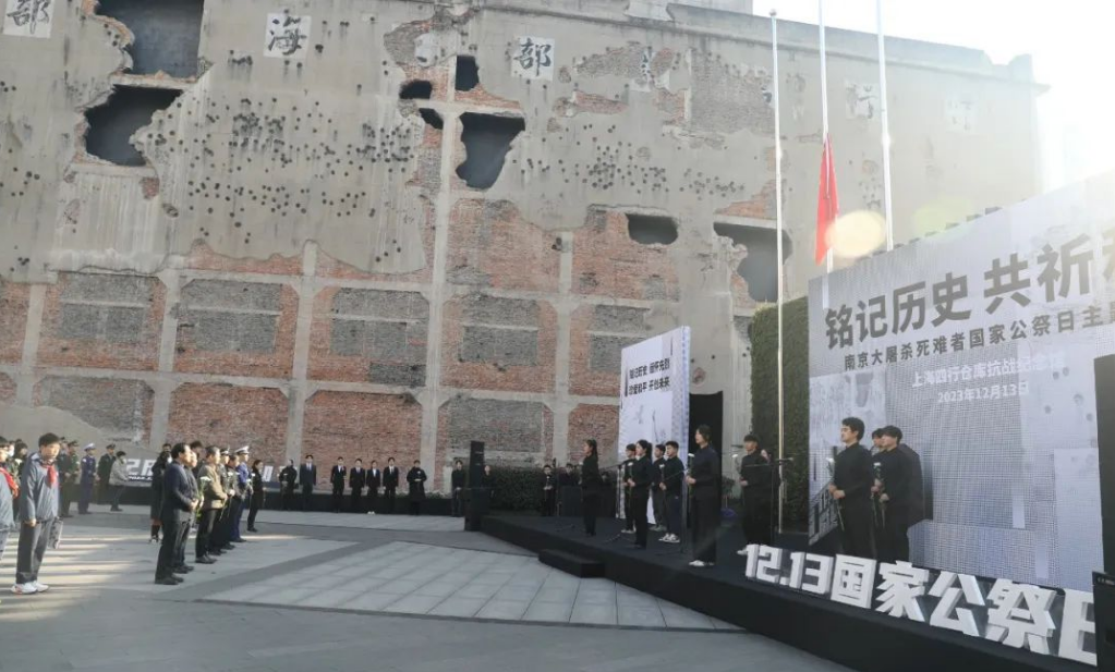 上海。上海四行仓库抗战纪念馆举行悼念活动,130余名社会各界代表参加活动。学生代表朗诵《国殇不可忘、吾辈当自强》《敬献我死守闸北之忠勇将士》。当天,纪念馆上线微信公众号公祭活动,网友共同缅怀逝者、祈愿和平。