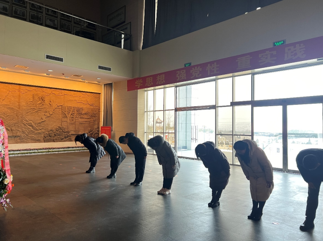 辽宁朝阳。赵尚志纪念馆举行同步悼念活动。全体人员向死难同胞敬献花篮、默哀,纪念馆讲解员为大家朗诵诗歌《英雄》。