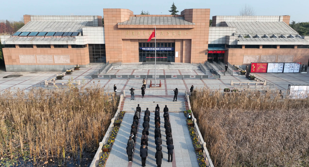 河北邢台。中国人民抗日军政大学陈列馆举行同步悼念活动。全体人员向死难同胞默哀,敬献花篮,学生宣读《和平宣言》。大家参观《人类的浩劫——1937南京大屠杀》图片展、抗大陈列馆,观看南京大屠杀主题纪录片。抗大红色少年广播站首批联盟单位11所学校通过线上参观《人类的浩劫——1937南京大屠杀》图片展等形式,缅怀遇难同胞。