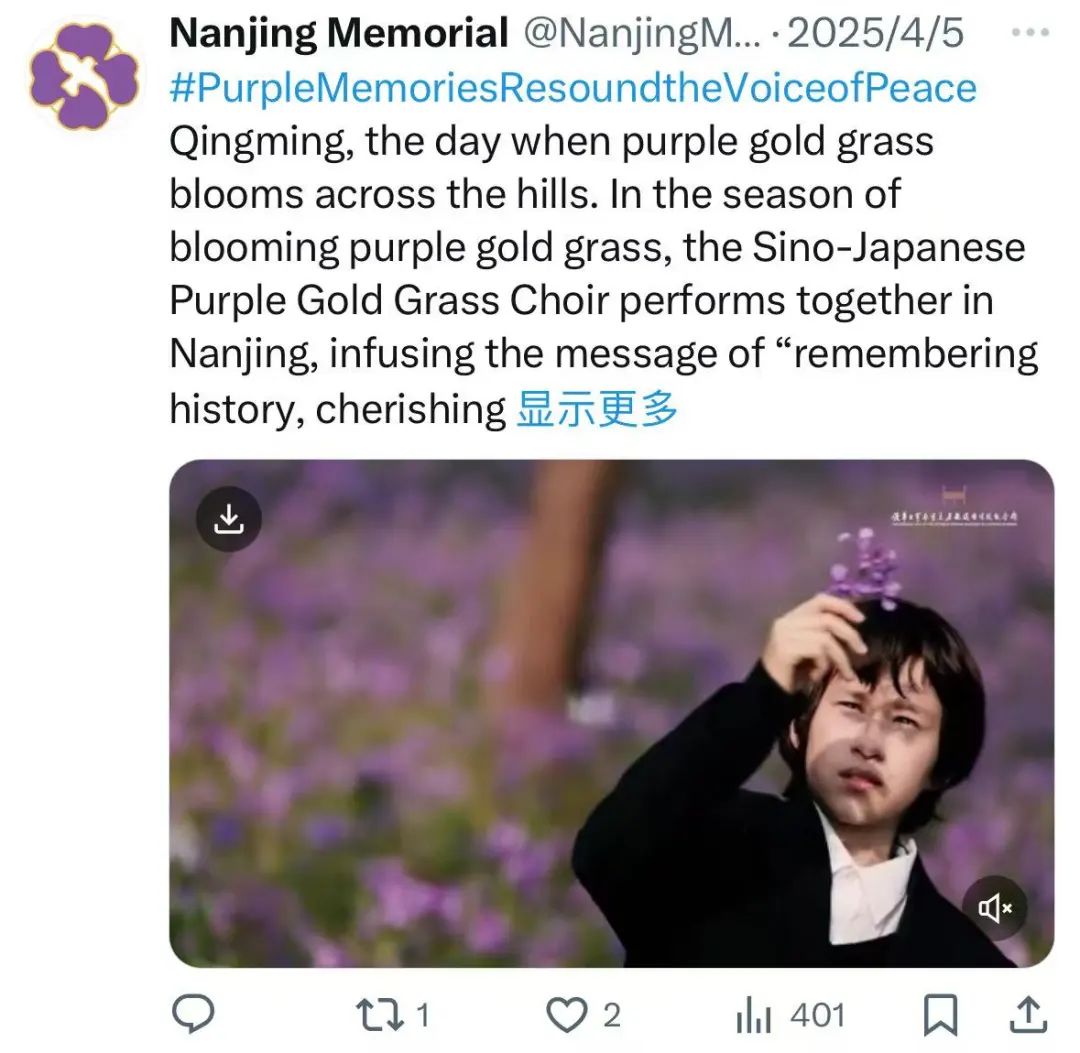 4月5日,我们推出短视频,讲述中日紫金草合唱团同台歌唱的故事。
