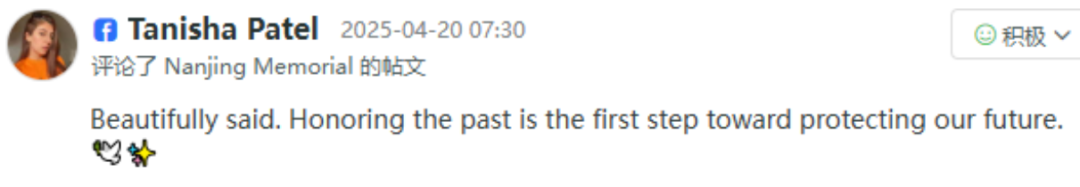 在纪念馆海媒平台Facebook、X中,视频获得许多国外网友点赞与好评。