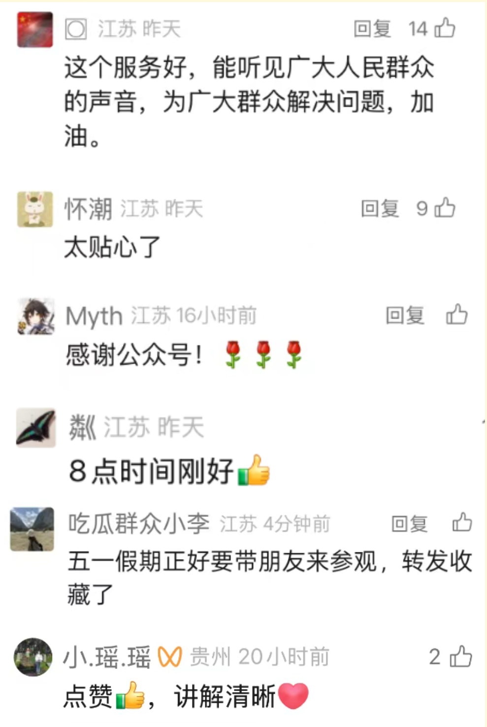 “五一”假期临近,为了帮助观众更好地了解最新预约政策,我们推出短视频、“一问一答”等传播产品。线上服务举措获得众多网友好评。