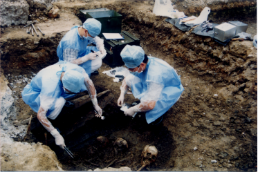 1998年8月18日至19日,在南京九华山细菌工厂遗址,挖出几十具人类头盖骨与尸骨,支离破碎并伴有浓烈的刺鼻药味。经法医学、生物学专家鉴定,认定这批尸骨是一六四四部队活人实验中受难者的遗骸。