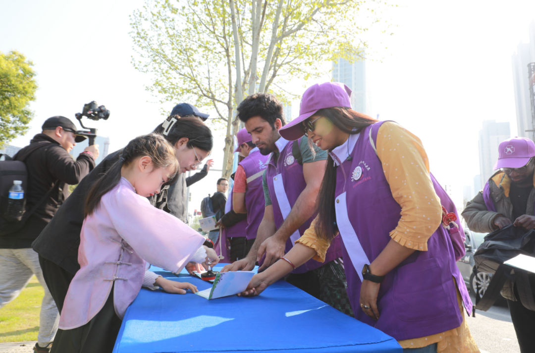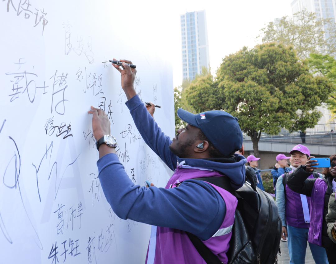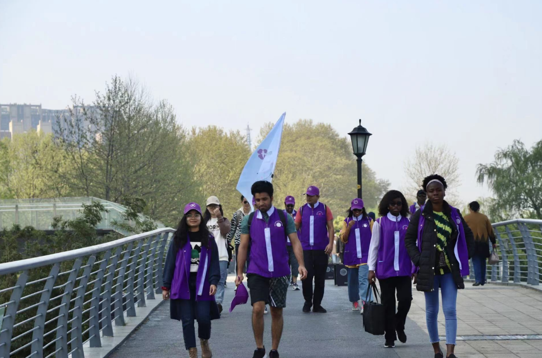 在徒步方阵中,一群外籍面孔吸引了行人的目光,他们目前在南京大学、东南大学、南京工业职业技术大学、南京科技职业学院等学校读书。