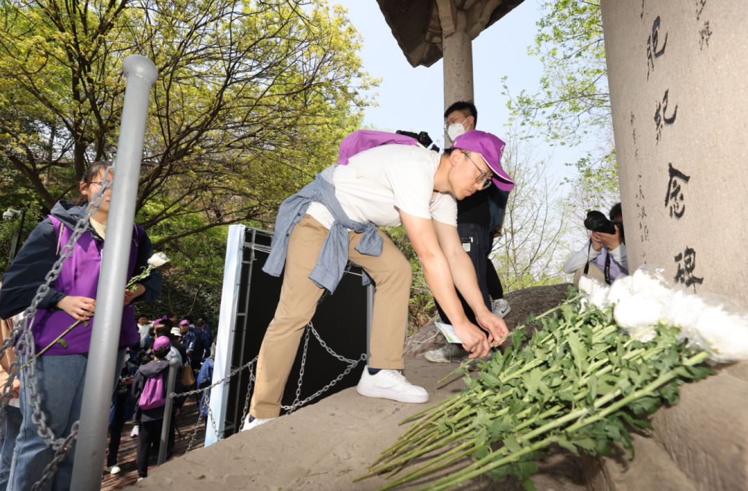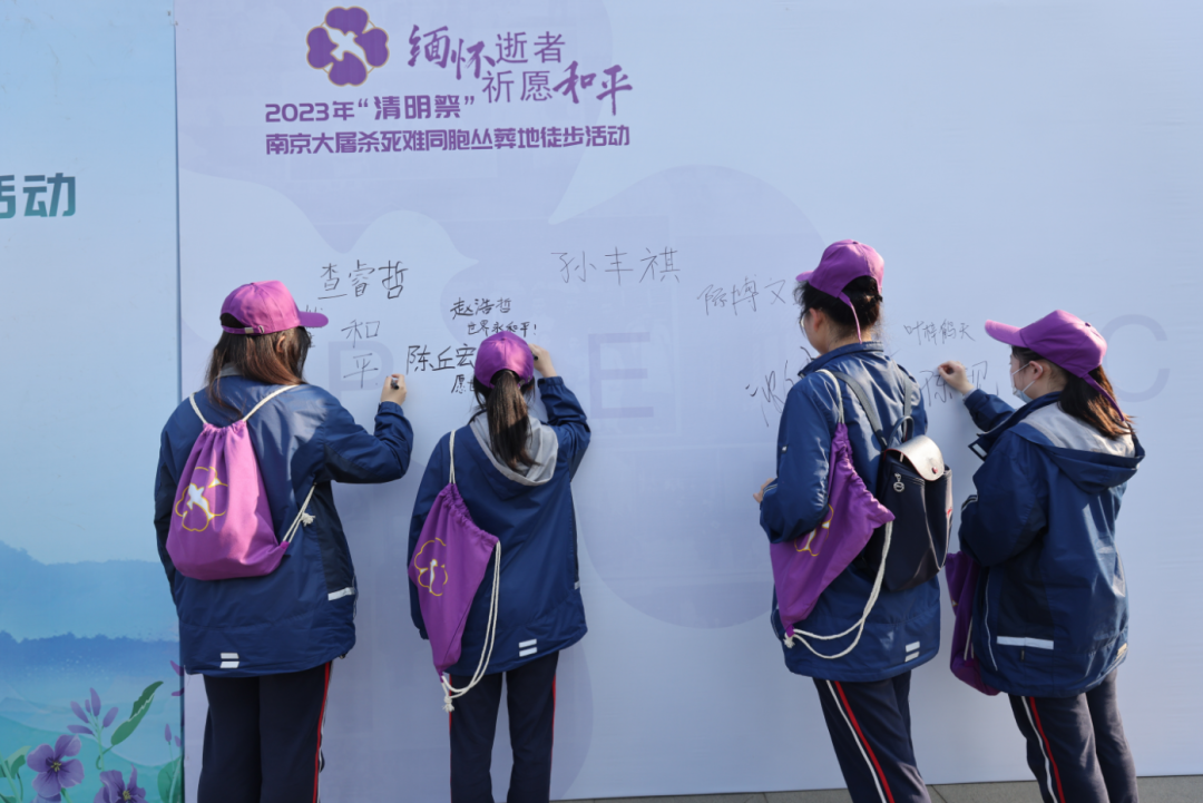 今天上午,由纪念馆主办、鼓楼区委宣传部协办的“缅怀逝者、祈愿和平——2023年‘清明祭’南京大屠杀死难同胞丛葬地徒步活动”启动,200多名社会各界的中外人士徒步寻访侵华日军南京大屠杀死难同胞丛葬地,并在纪念碑前举行献花、读书会、分享感悟等活动,祭忆逝者、祈愿和平。