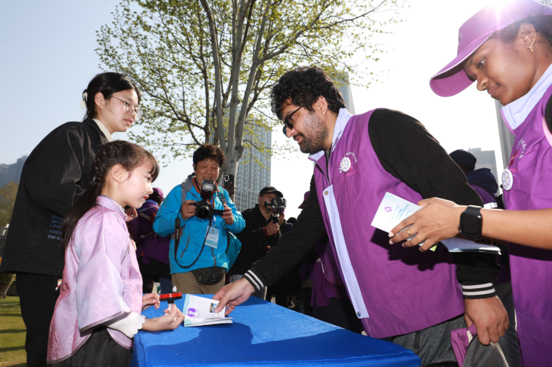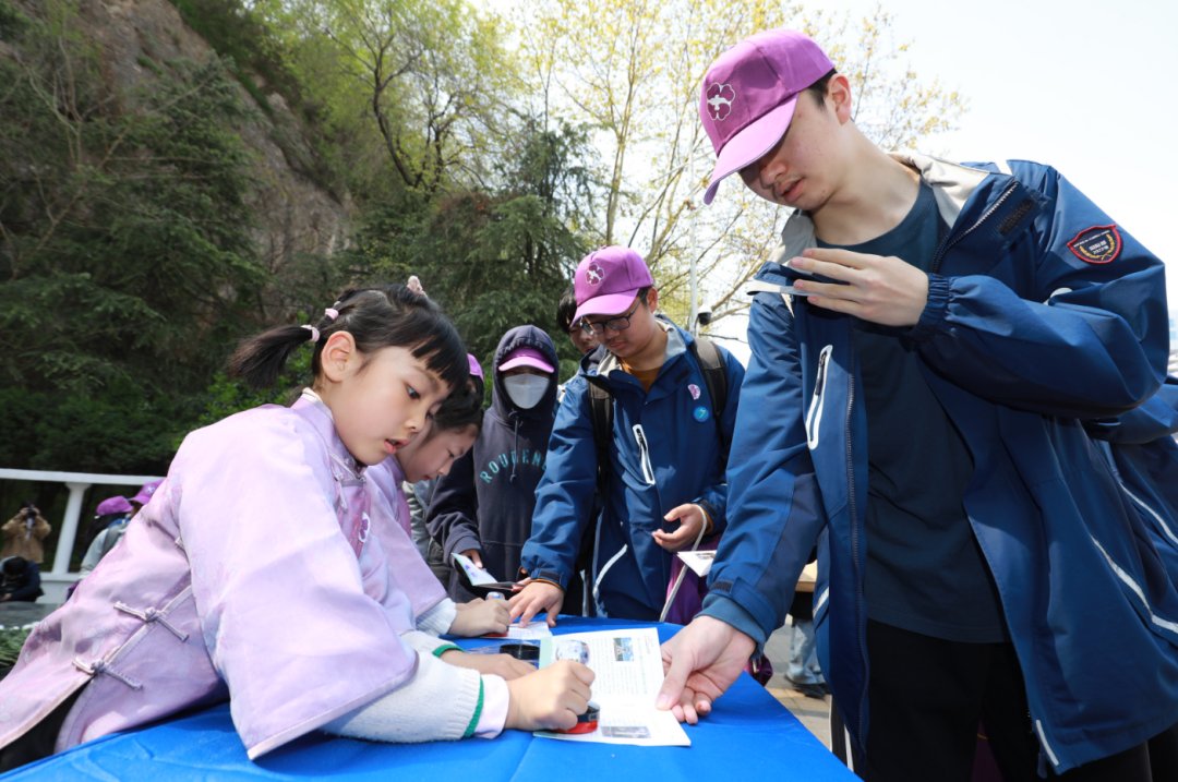 紫金草女孩为大家盖纪念章
