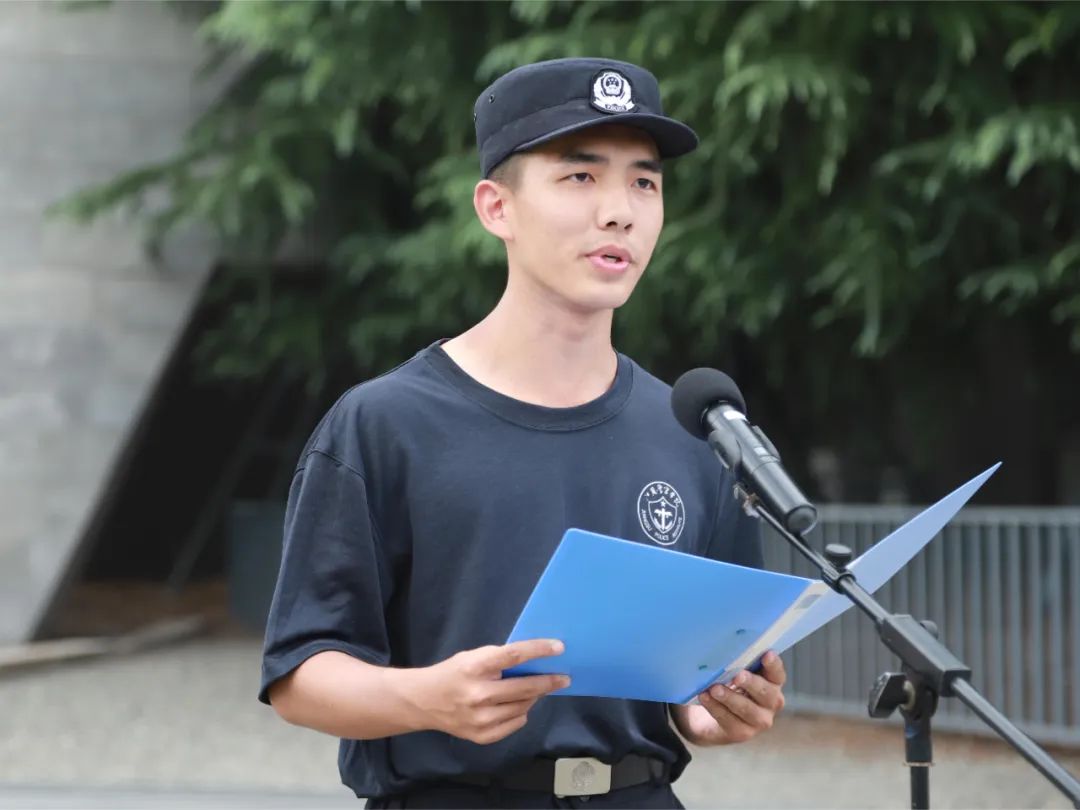 新生代表高雨婕发言。她说:“作为一名新学警,我们肩负着时代的重任,应以更高的标准严格要求自己,厚植家国情怀,对党忠诚、服务人民、执法公正、纪律严明,为母校添彩,为祖国增色。”