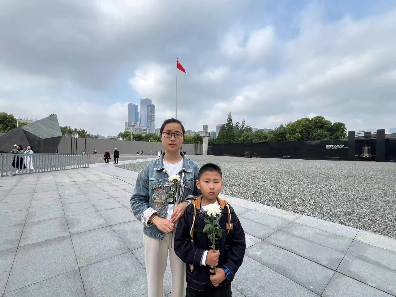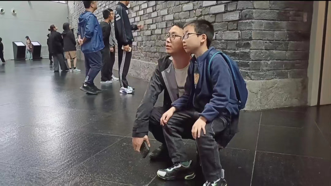 上海市奉贤区育秀小学三年级(6)班的吴芃昊同学跟随爸爸妈妈来到纪念馆参观。在“南京大屠杀史实展”尾厅,爸爸蹲着给孩子讲“前事不忘 后事之师”含义的一幕,令人动容。爸爸吴森贤说,他们五一带孩子来南京旅行,特别想来纪念馆看看。“预约名额特别难,但是一有空就刷,约了几天终于约到了,就是想带孩子来了解这段历史。”