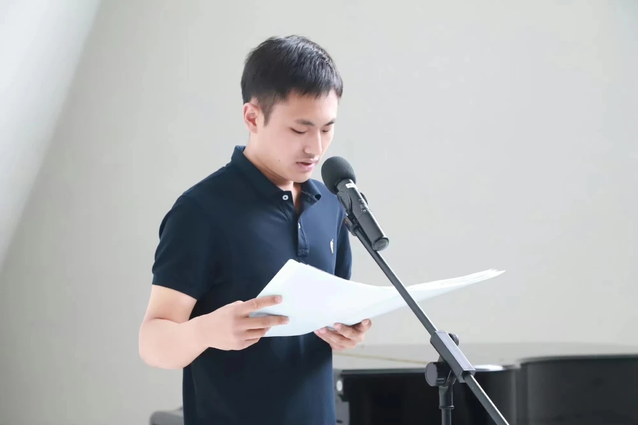 黑龙江省鸡西市观众廖阅翔怀着沉重的心情参观纪念馆。参观到尾厅,他参与了“紫金草朗读者”沉浸式体验活动。廖先生说:“想通过这种方式悼念遇难同胞们,在阅读过程中感受到了许多细节,对我个人而言是一次非常有意义的体验。”