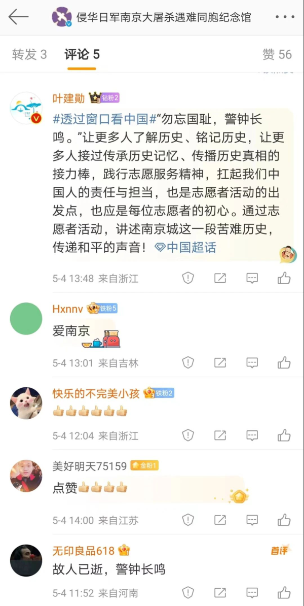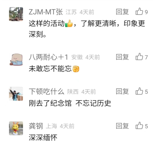 在线上,网友们纷纷在纪念馆官方微博、微信公众号后台表达心声。