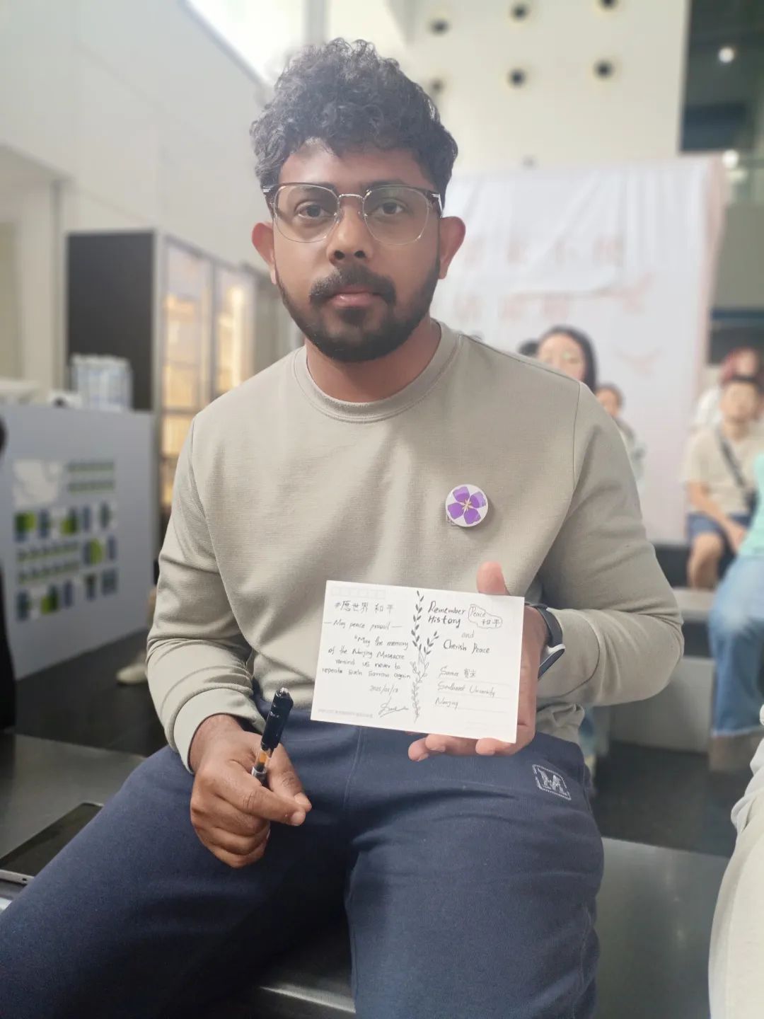 来自埃及的留学生法易说:“看到纪念馆运用最新的AI技术,修复历史记忆,特别是复原了年迈的幸存者的童年照片,让我印象特别深刻。如果没有战争,他们本该拥有美好的童年。参加今天的活动,让我铭记1937年在这座城市发生的灾难,也要珍惜今天的和平生活。”