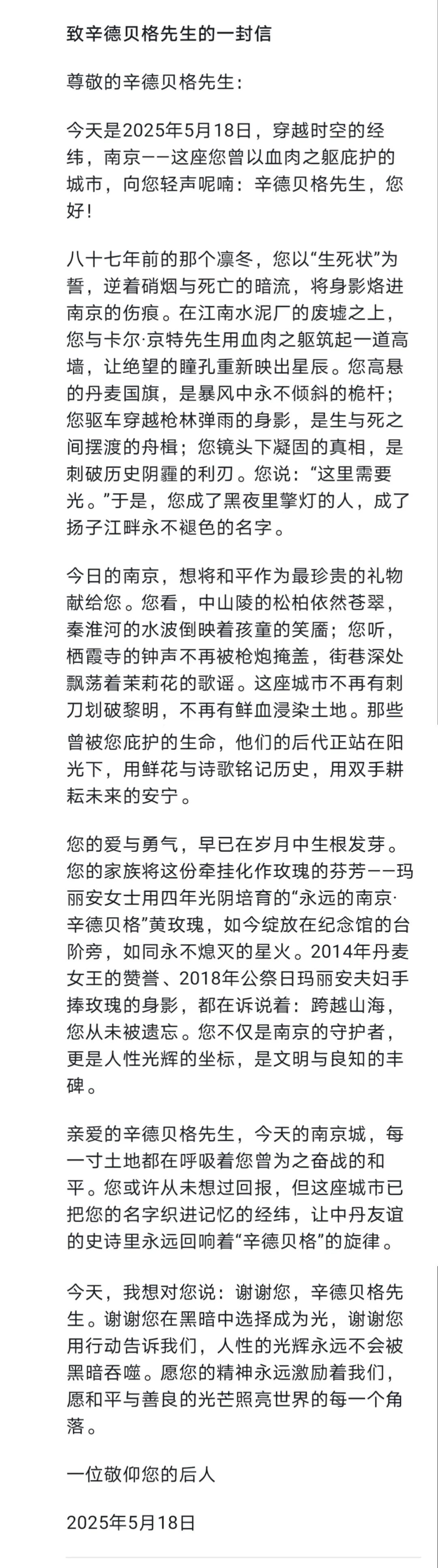 情景三:请DeepSeek给国际友人贝恩哈尔·辛德贝格写一封信: