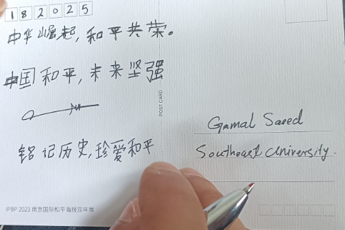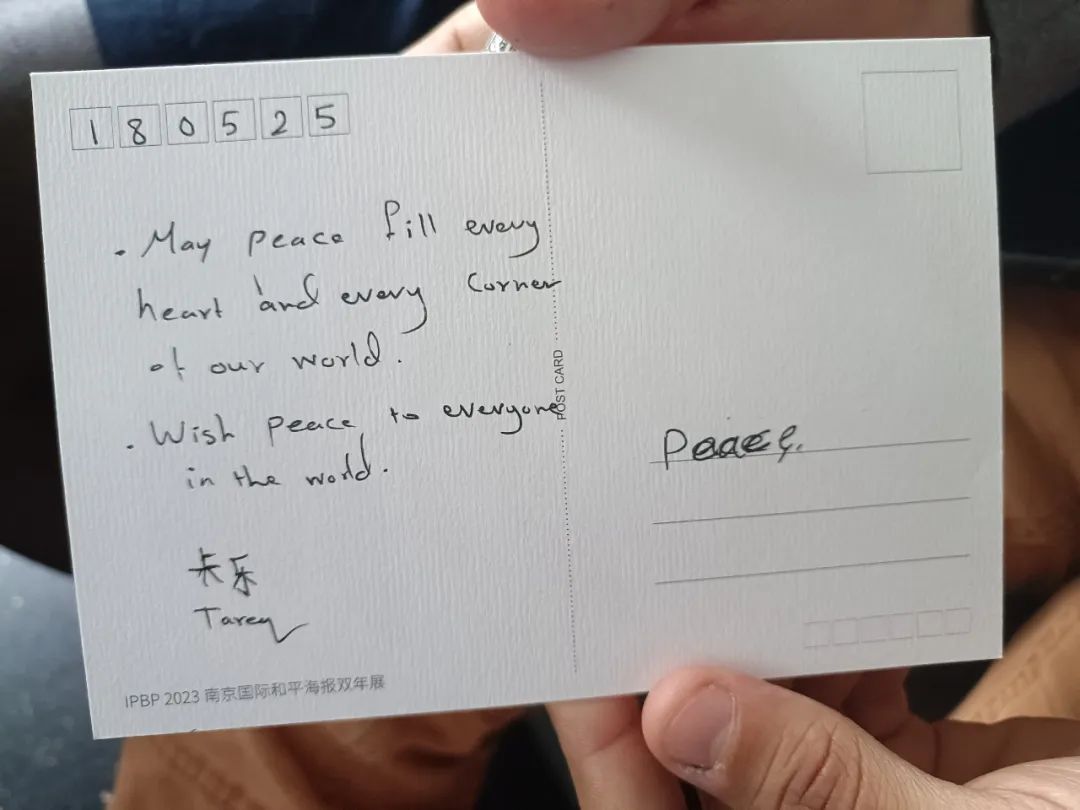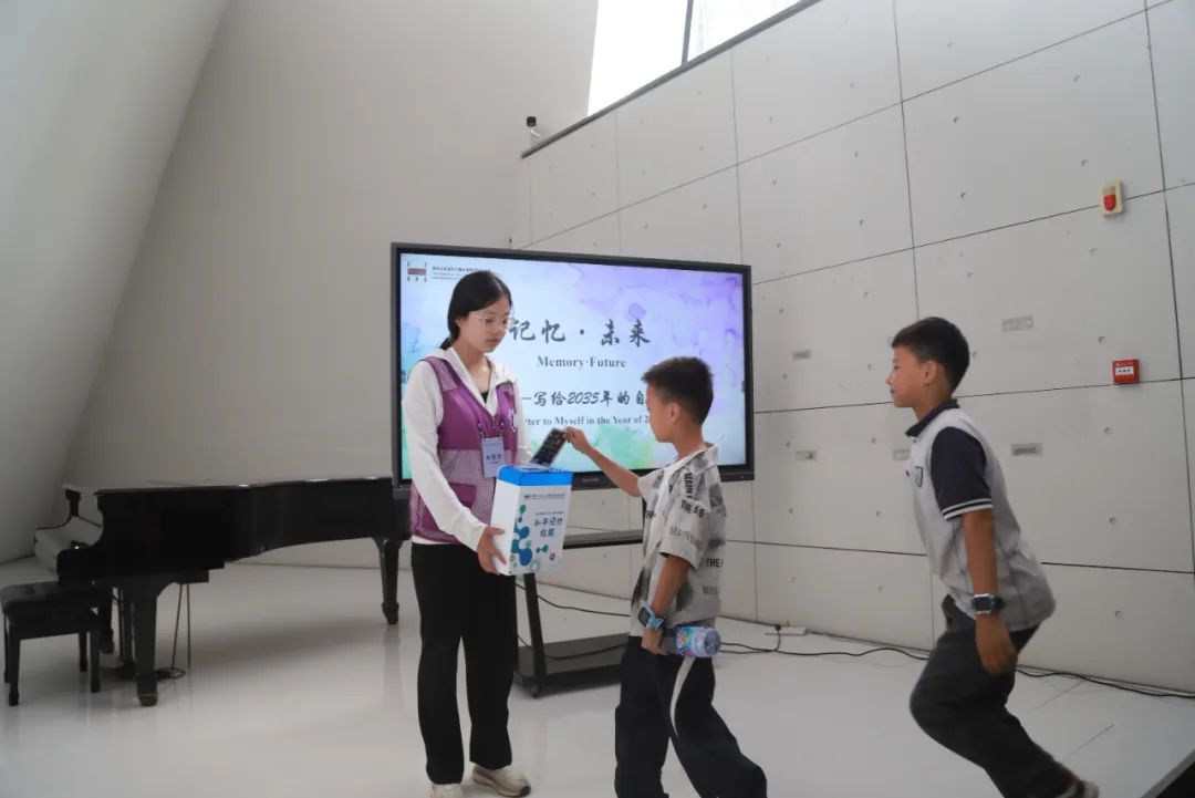 情景四:寄语未来,在明信片上写一段祝福给10年后的自己,投入“和平记忆箱”,相约2035年拆封。