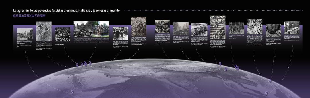 ▲The exhibition begins with a timeline of fascist aggressions, using a global map to highlight the Nanjing Massacre as one of the international massacres during World War II, introducing the atrocities of Japanese militarism from a worldwide perspective.