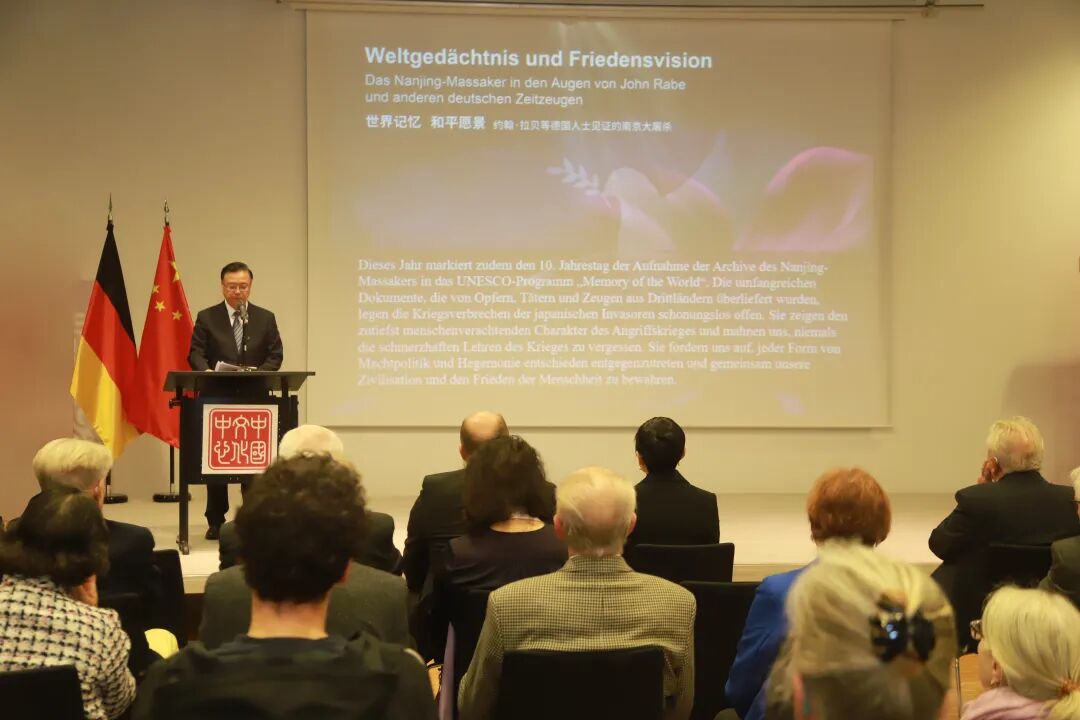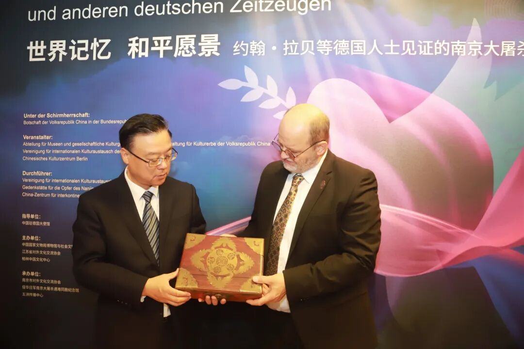 The exhibition is organized under the guidance of the Chinese Embassy in Germany by the National Cultural Heritage Administration of China, the Jiangsu Provincial Association for Cultural Exchange with Foreign Countries, and the China Cultural Center in Berlin, with support from the Nanjing Memorial Hall and the China Intercontinental Communication Center.