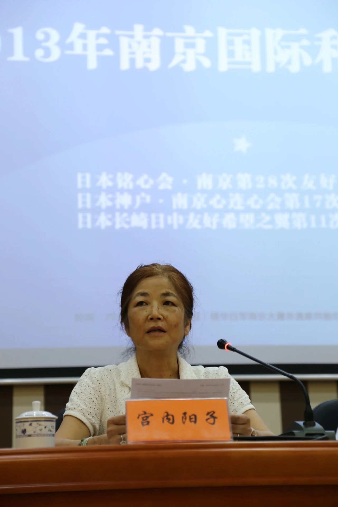On August 15, 2013, the Japanese “Kobe-Nanjing Heart-to-Heart Association” made its 17th visit to China. The leader, Miyauchi Yoko, spoke at the peace assembly.