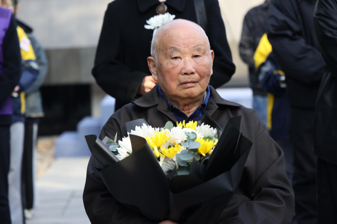 All participants held chrysanthemums and bowed three times in tribute to the victims of the Nanjing Massacre. Xia Shuqin, aged 96, and Liu Minsheng, aged 91, slowly approached the “Wall of Tears” with the support of their family members. Behind them are the inheritors of the historical memory of the Nanjing Massacre, including Ge Fengjin, Xia Yuan, Hu Jingya, Zhang Qing, and others. This group of inheritors is steadily growing.