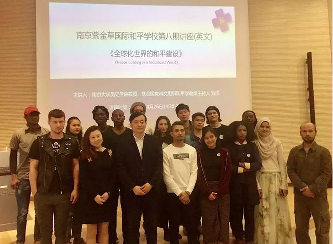 Yang Xiaming, a professor of Jiangsu Administration Institute and translator of Iris Chang’s book The Rape of Nanking, Liu Cheng, a professor of the School of History, Nanjing University and chair of UNESCO Peace Studies, Li Xin, an associate researcher of Jiangsu Provincial Academy of Social Sciences, and Zhang Ping, a lecturer of Nanjing University of Aeronautics And Astronautics delivered lectures to foreign students.
