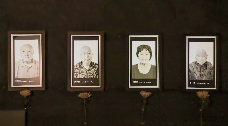 In the morning of April 13, in front of the photo wall of Nanjing Massacre survivors, the Memorial Hall held alights-off ceremony for Zhu Zaiqiang, Pu Yeliang, Wang Suming and Wang Heng, four Nanjing Massacre survivors that died this year.