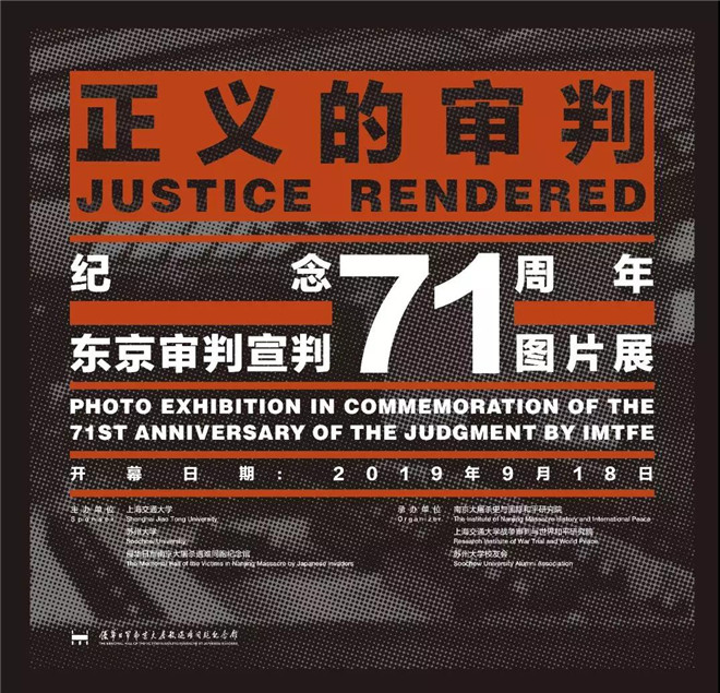 《正义的审判——纪念东京审判宣判71周年图片展》共分三大部分——通往东京审判之路、东京审判、亚太地区各国的日本战犯审判。展陈面积500平米,展出珍贵文物9件,其中3件文物由苏州大学博物馆借展。