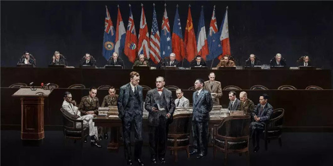 “我对历史题材一直比较关注,十多年前我就开始关注东京审判这个题材。2015年,我与东京审判研究中心取得联系,开始采访、搜集素材。我先后到日本、台湾、美国,搜集大量影像和图片资料。历史画往往表达的是一个瞬间,而我创作的这幅画是将两年半内发生的事情呈现在一个画面上,难度很大。”