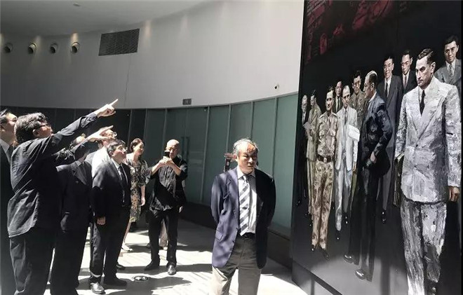 李斌先生向嘉宾介绍文献式全景画《东京审判》