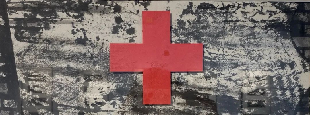作品以黑灰色为主调,唯有一幅《血旗》中画着一枚格外鲜明的红十字。“88年前,20多位外籍人士冒着生命危险留在南京,开展人道主义救援,他们彰显了人性大爱。”丁品说,“这面在战争中屹立的红十字,就是生命的象征。”