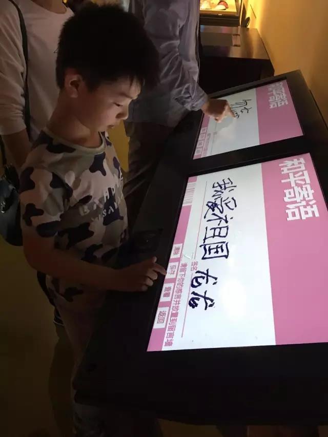 一位叫龙龙的小朋友在国庆的纪念馆留下了自己的和平寄语。