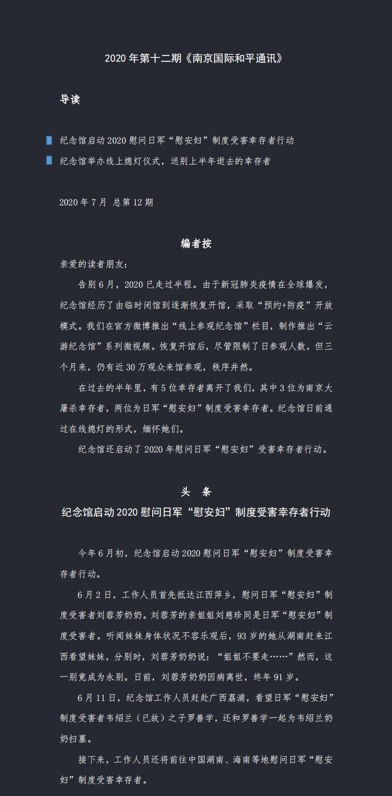 纪念馆启动2020慰问日军“慰安妇”制度受害幸存者行动