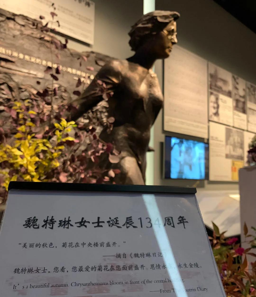 寄语牌上写着“魏特琳女士,您看,您最爱的菊花在您面前盛开。恩情永在,永生金陵。