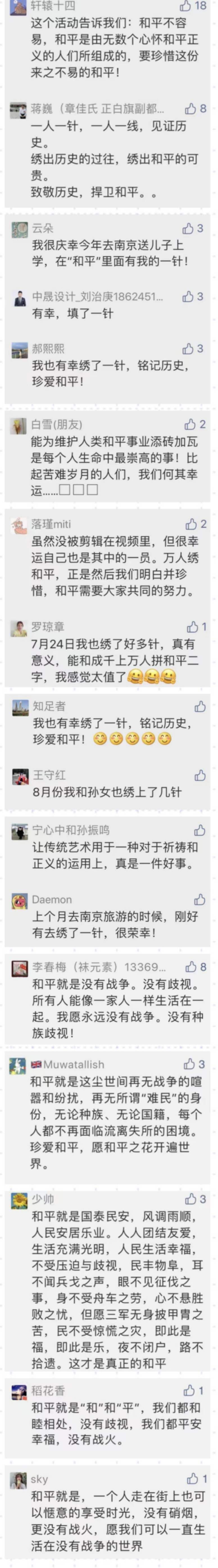 历时4个月,“万人绣和平”交互活动收针了。一针一针绣出“和平”,方知和平来之不易。