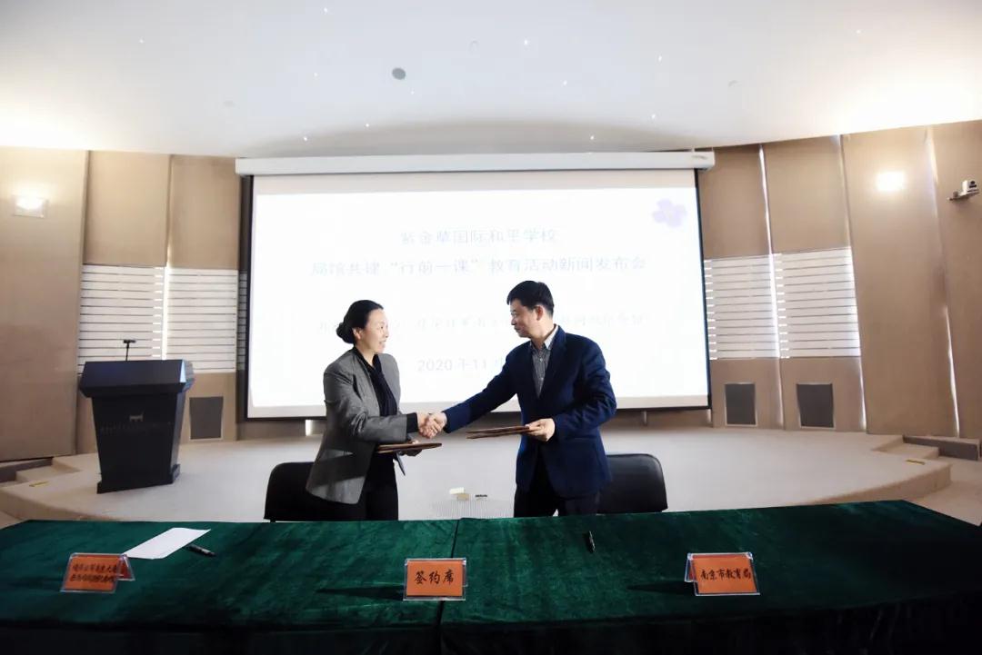 发布会上,南京市教育局一级调研员卢普新与纪念馆副馆长凌曦共同签署《侵华日军南京大屠杀遇难同胞纪念馆、南京市教育局合作协议书》。