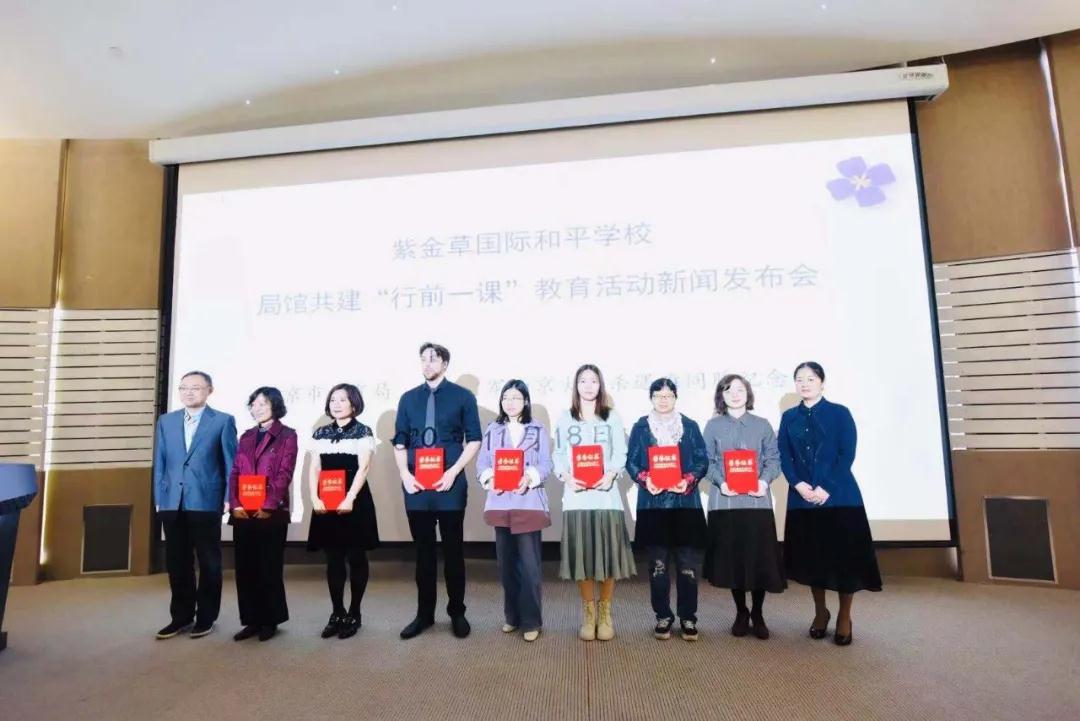 11月18日上午,南京市教育局与我馆合作共建紫金草国际和平学校“行前一课”教育活动新闻发布会在纪念馆报告厅举行。这是南京在思想政治教育和国际和平教育方面的一次特色创新。这意味着,今后南京普通高中和职业学校中外合作办学项目或国际课程班毕业生出国留学前,都要先来纪念馆上“行前一课”,接受爱国主义与和平学教育。