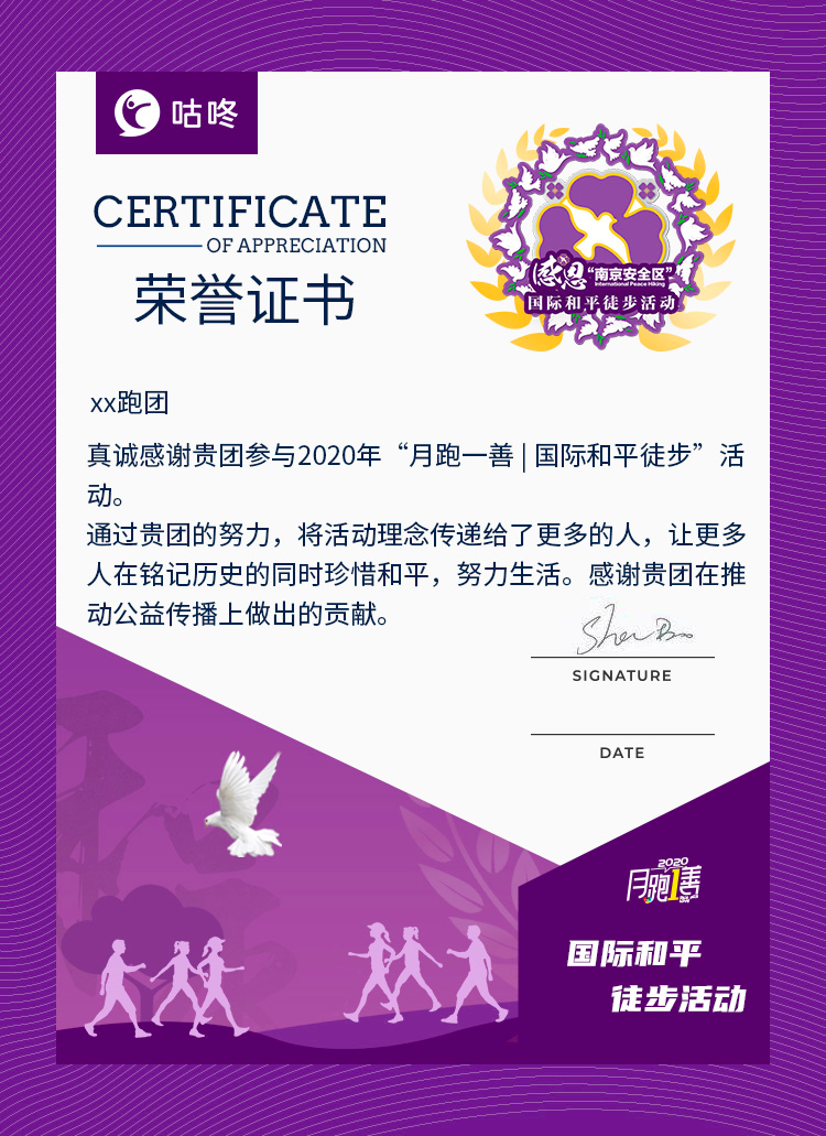 电子公益证书:所有按要求成功报名且发起活动的咕咚运动团,均可获得