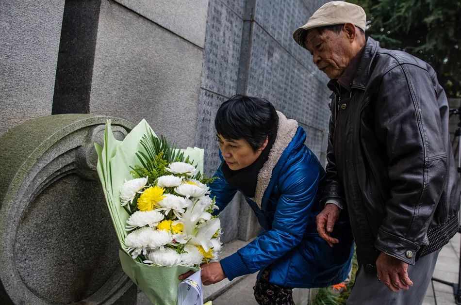 2014年 在纪念馆的南京大屠杀遇难者名单墙前参加了家祭活动,并与小姑一同为遇难同胞献花。