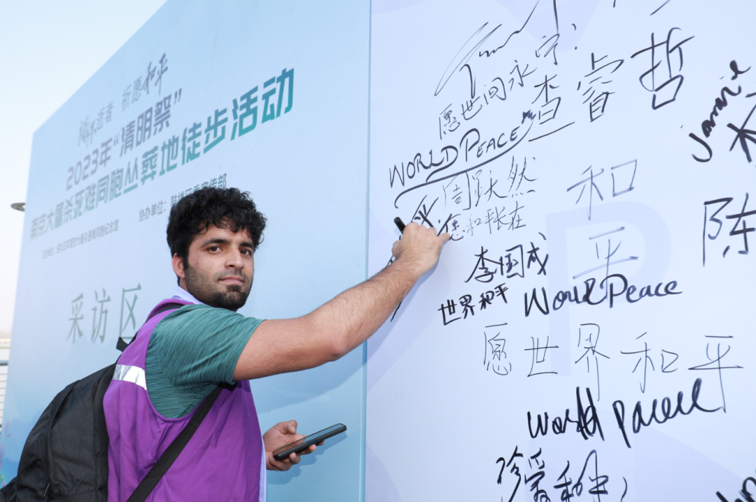 今天上午,由纪念馆主办、鼓楼区委宣传部协办的“缅怀逝者、祈愿和平——2023年‘清明祭’南京大屠杀死难同胞丛葬地徒步活动”启动,200多名社会各界的中外人士徒步寻访侵华日军南京大屠杀死难同胞丛葬地,并在纪念碑前举行献花、读书会、分享感悟等活动,祭忆逝者、祈愿和平。