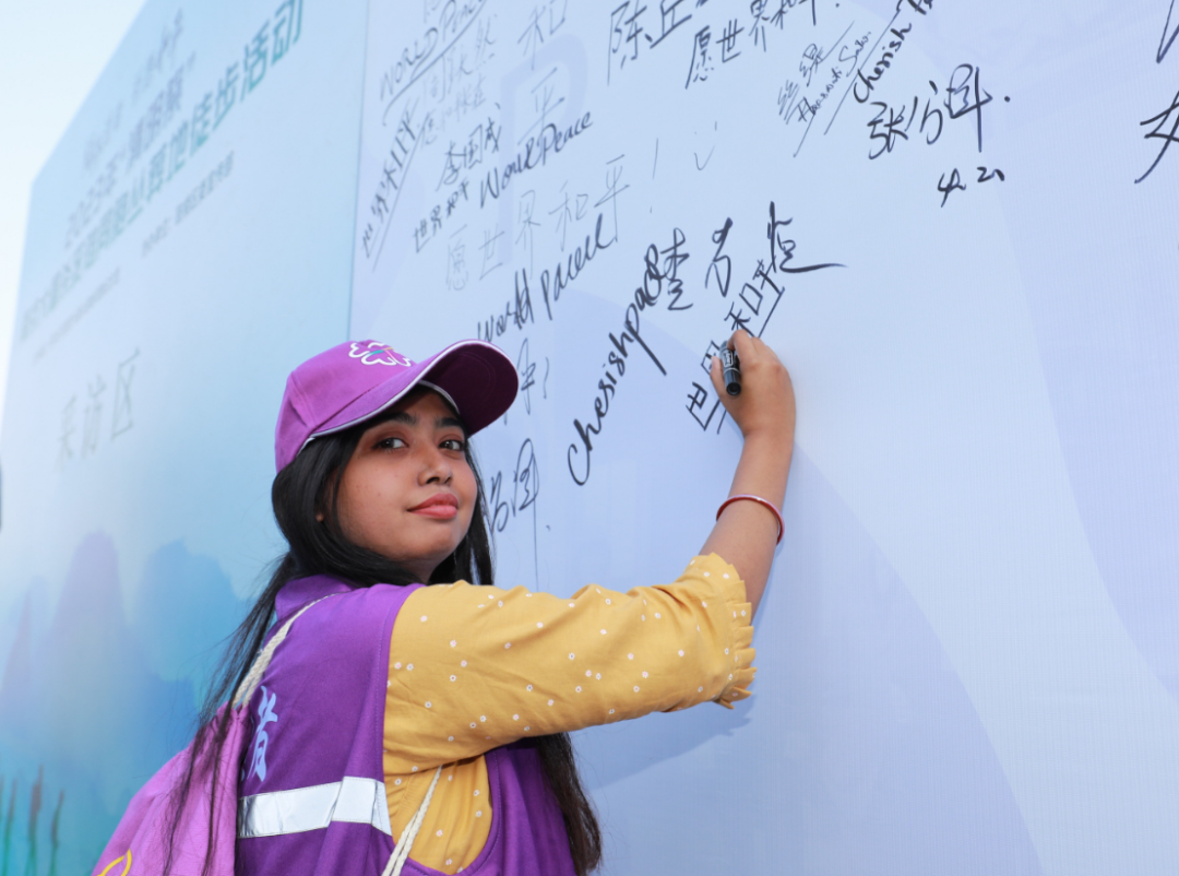 在这次徒步队伍中,出现了许多年轻人和紫金草国际志愿者的面孔。