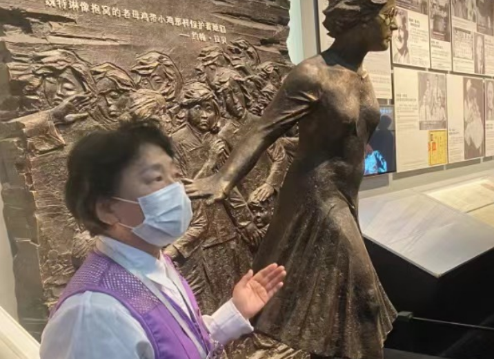 她说:“观众参观史实展后心情是沉重的,走到尾厅时能听到悠扬舒缓的乐声,让心灵得到慰藉。”