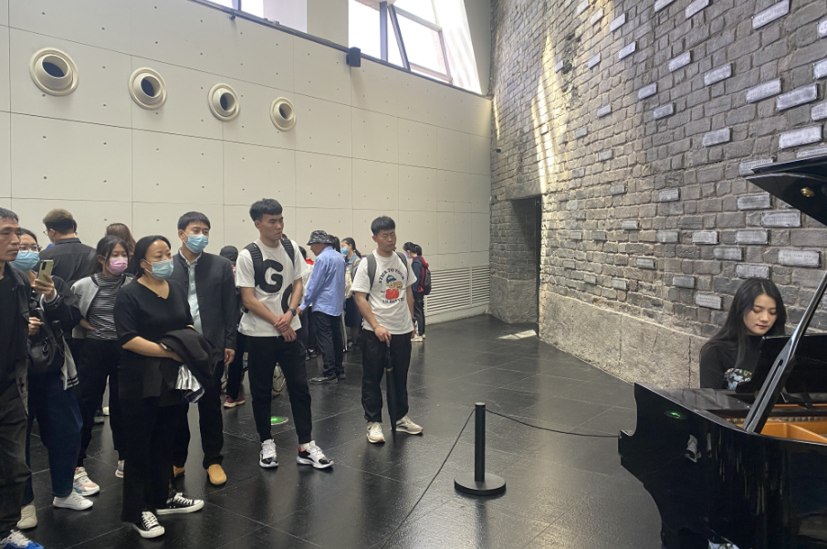 孙槿柔,“90后”,是一名音乐教师,经常参加纪念馆“和平颂”沉浸式演出活动,为观众演奏《我和我的祖国》等钢琴曲目。观众驻足聆听,在乐声中回望历史、祈愿和平。