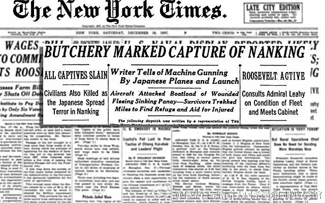 而第一个使用“南京大屠杀”一词的就是美国《纽约时报》记者德丁。1937年12月18日,德丁从美国炮舰上用无线电拍发的新闻稿《所有俘虏全均遭屠杀,日军在南京制造恐怖,平民也遭杀害》登上了《纽约时报》的头版。
